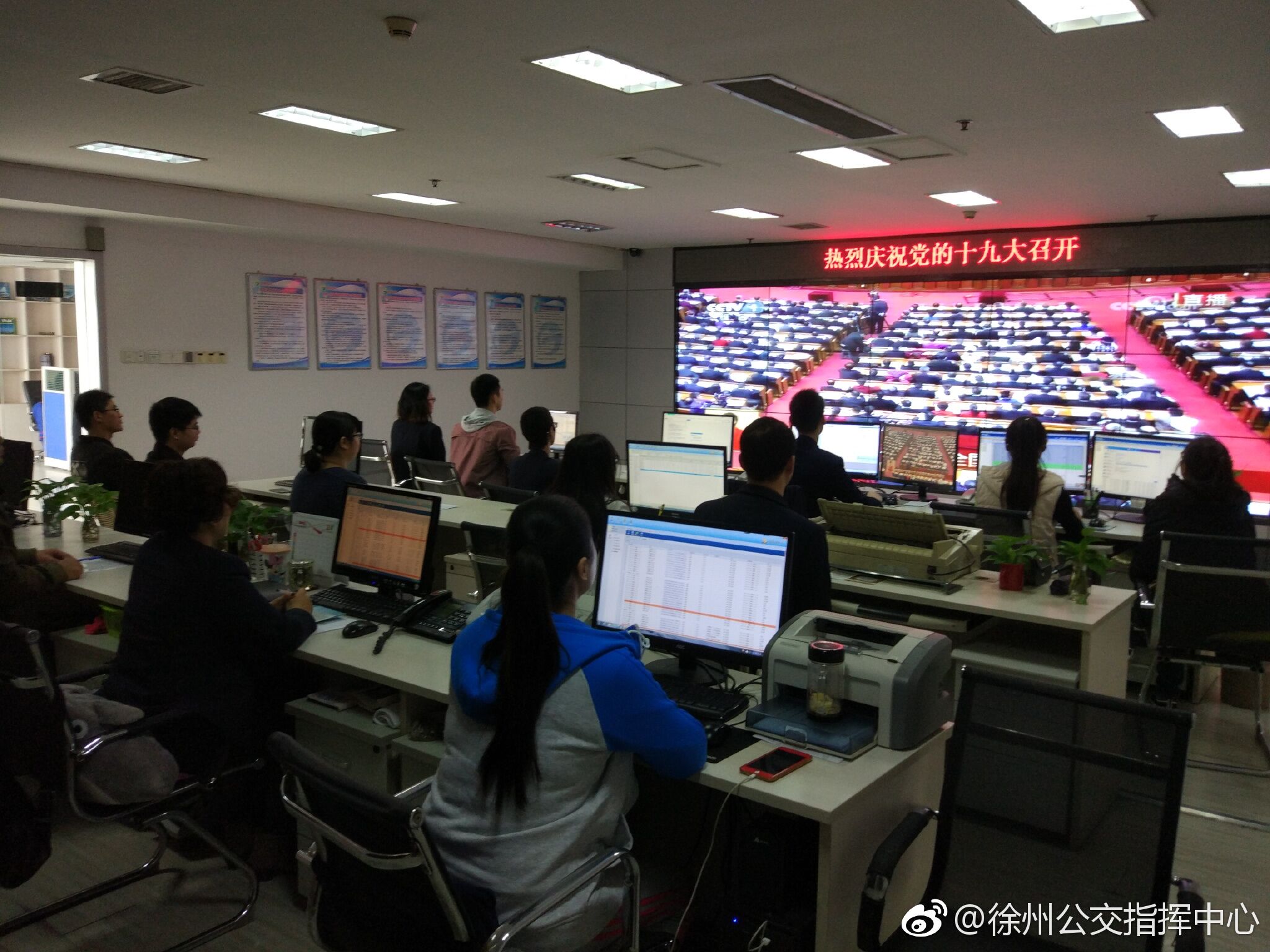 上午9點,第十九次全國人民代表大會在雄壯激昂的國歌聲中拉開帷幕,公司機(jī)關(guān)、賈汪公司、中北公司、服務(wù)督導(dǎo)隊、智能調(diào)度中心等單位紛紛組織黨員、員工觀看了十九大開幕實況。