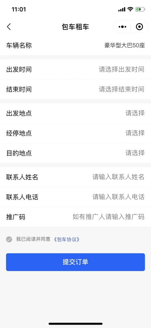 點擊上方“預(yù)約訂車”,填寫包車信息,提交訂單。在線下單后,工作人員會第一時間電話聯(lián)系您。