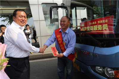4月30日上午,公司總經理杜紅軍、黨委書記劉青,副總經理李偉、丁玉華等高層領導分成兩組,向節(jié)日期間加班加點、奮戰(zhàn)在公交一線的市勞動模范10路駕駛員王培墩、49路駕駛員王博和65路駕駛員劉委送去“五一”勞動節(jié)的問候,并送上鮮花和慰問金,鼓勵三位勞模充分發(fā)揮先鋒模范作用,愛崗敬業(yè),優(yōu)質服務,崗位創(chuàng)新,并做好傳幫帶,弘揚正能量,為徐州公交的發(fā)展作出新的更大的貢獻。三位勞模一致表態(tài):一定不辜負領導的囑托和期望。